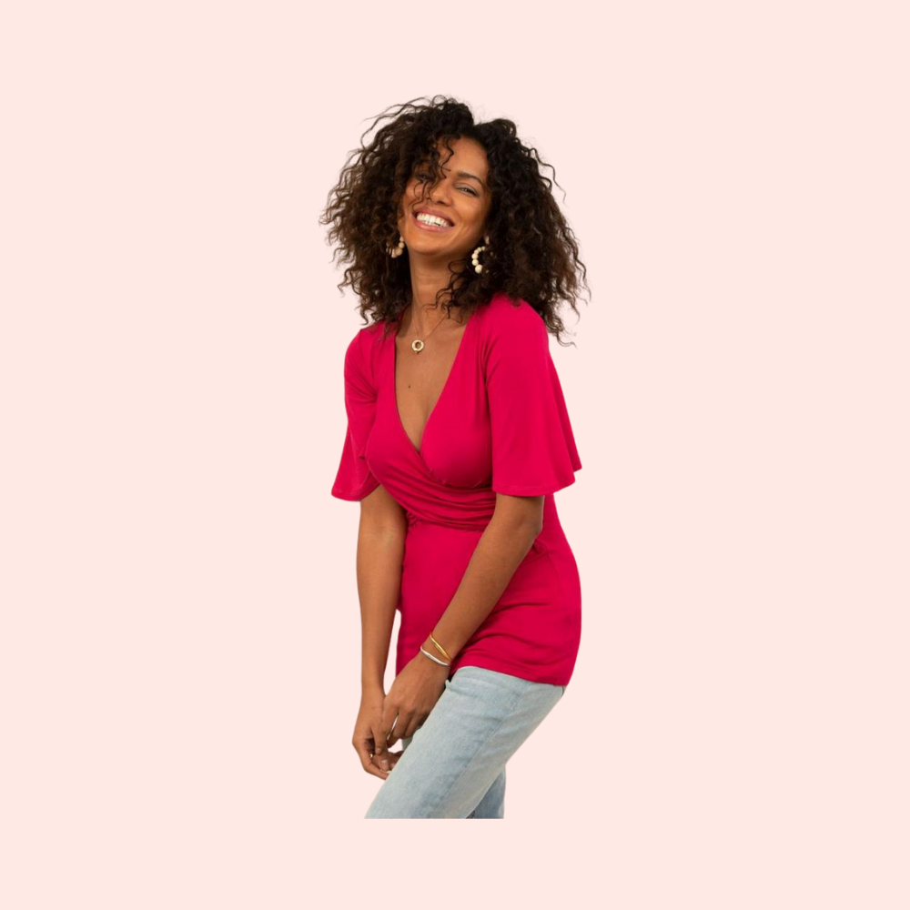 Alliant confort, féminité et praticité, ce top de grossesse et d’allaitement est un essentiel du vestiaire maternité. Conçu en coton jersey stretch ultra doux, il épouse les formes du corps sans comprimer, s’adaptant à l’évolution du ventre mois après mois. Son décolleté croisé au drapé délicat permet un accès facile au sein, pour un allaitement pratique même d’une seule main. Avec ses manches courtes évasées et sa coupe près du corps, il se porte aussi bien à la maison qu’à l’extérieur, pour un look décontracté et soigné.